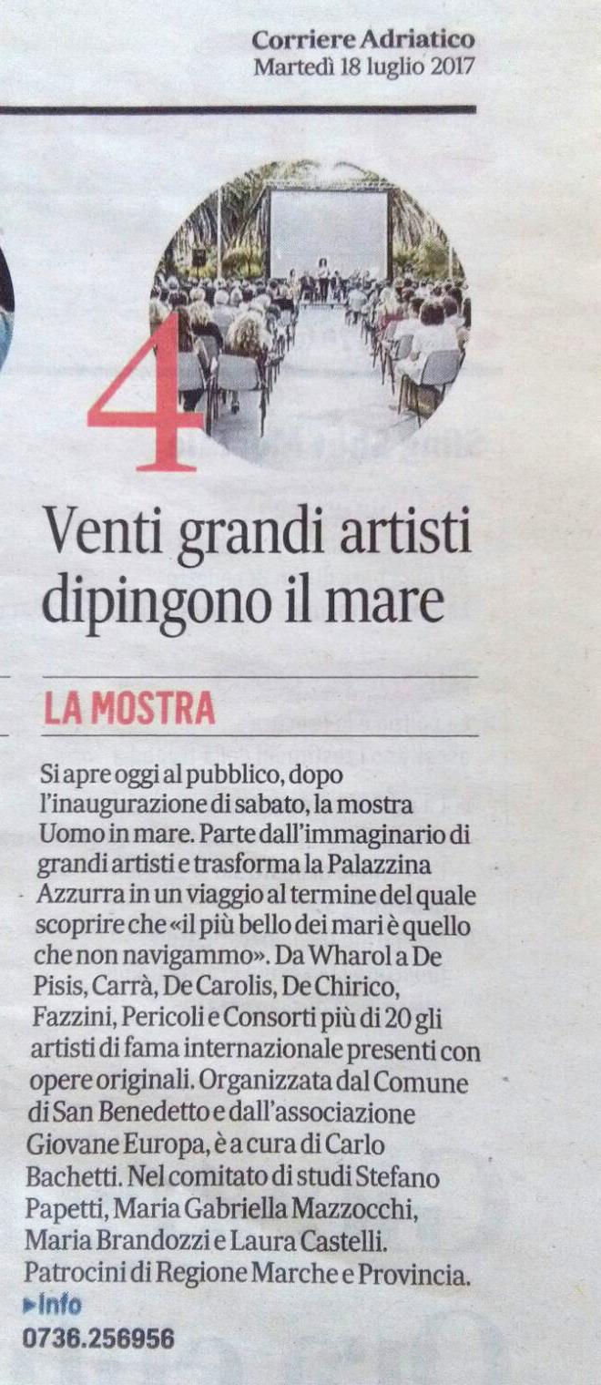 La Mostra #UomoinMare segnalata tra i primi 10 eventi della Regione Marche oggi per il Corriere Adriatico.it.